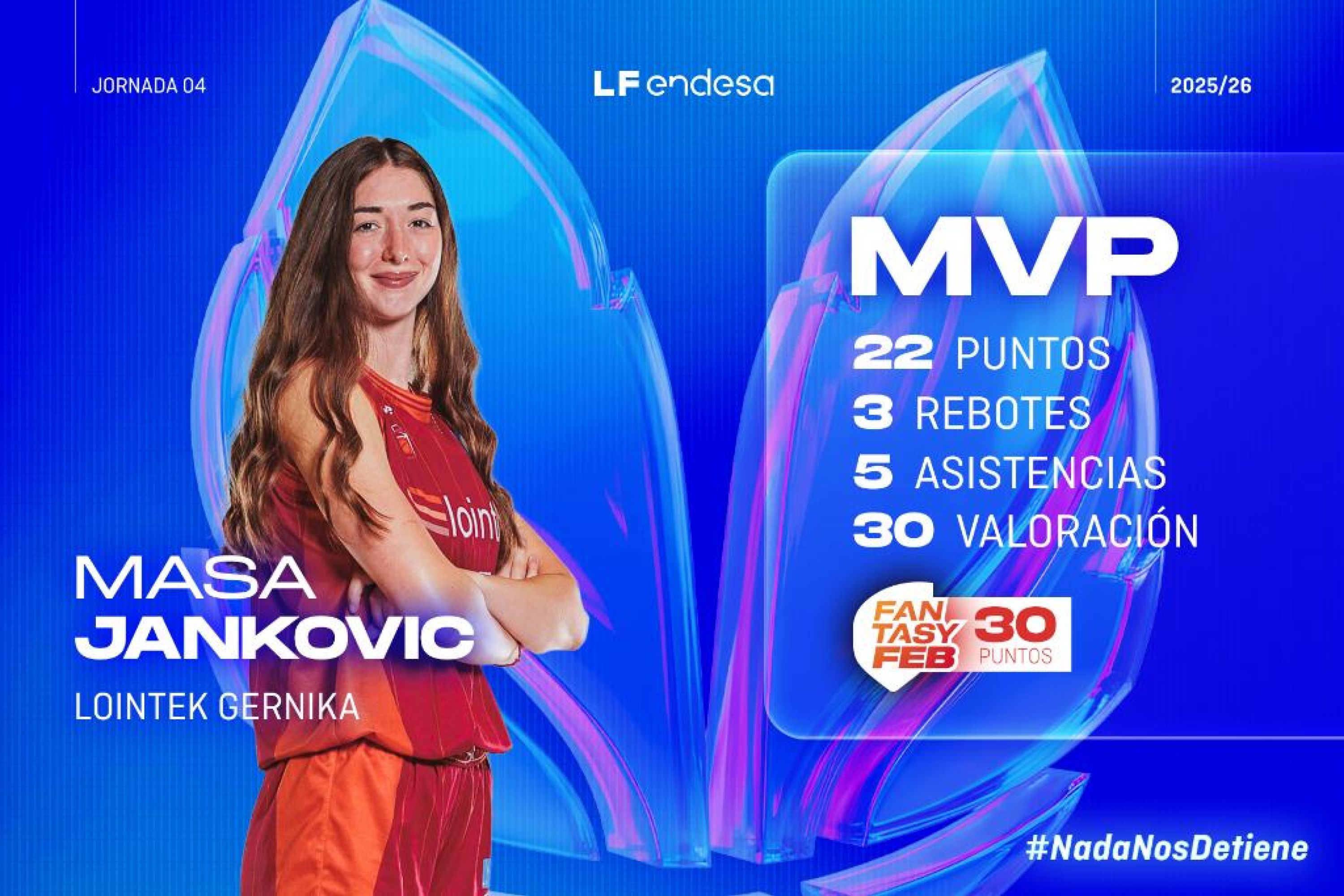 Llegó a España muy joven al Innova-TSN Leganés, pasó por el Perfumerías Avenida y se ha consagrado con la camiseta del Lointek Gernika. Masa Jankovic consigue su primer MVP semanal en la derrota de su equipo en Lugo confirmando que va a ser una de las estrellas de la competición.
